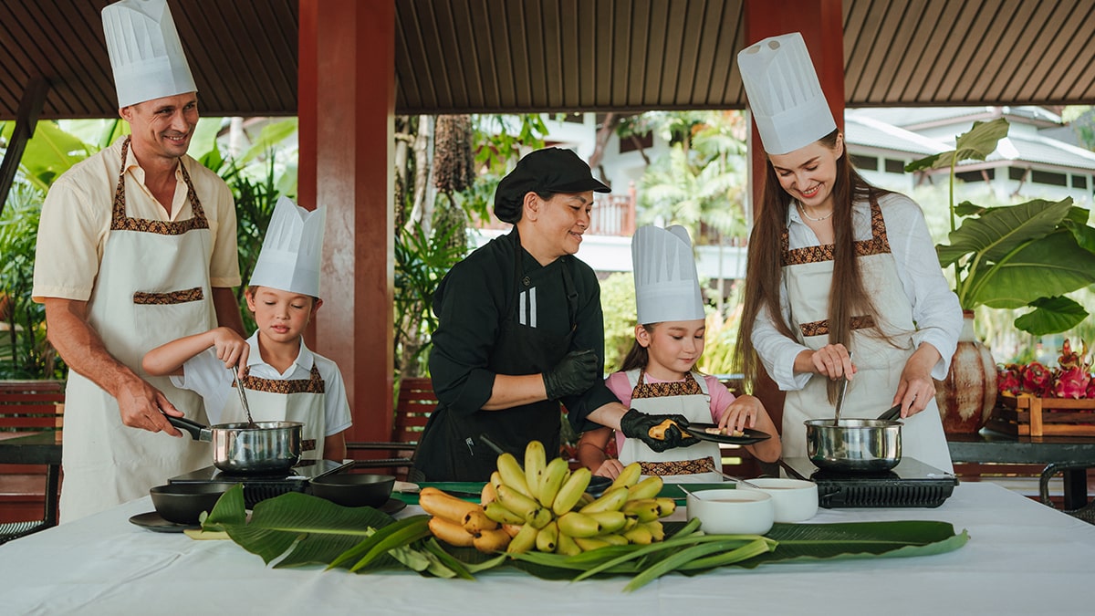 Enjoy family time by engaging in activities together while learning the steps to make Thai dishes. There are 4 menus to choose from. You can select 1 dish from the 4 options we have.See menu here. Choose 1 option from 4 options and specify the date and time you would like to use the Thai Cooking Class service to rsvn@thavornbeachvillage.com