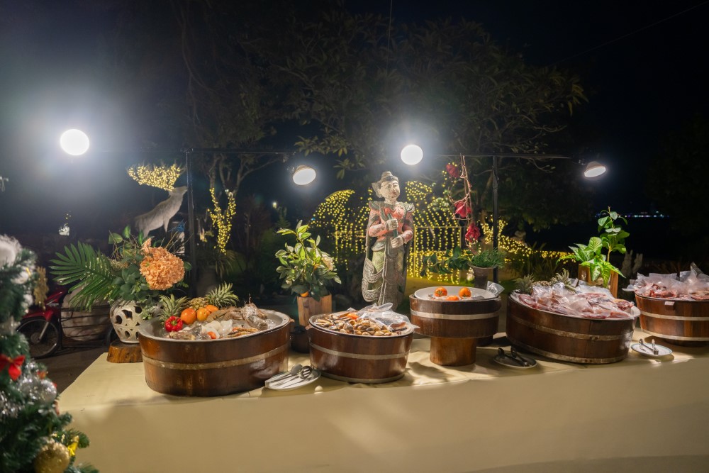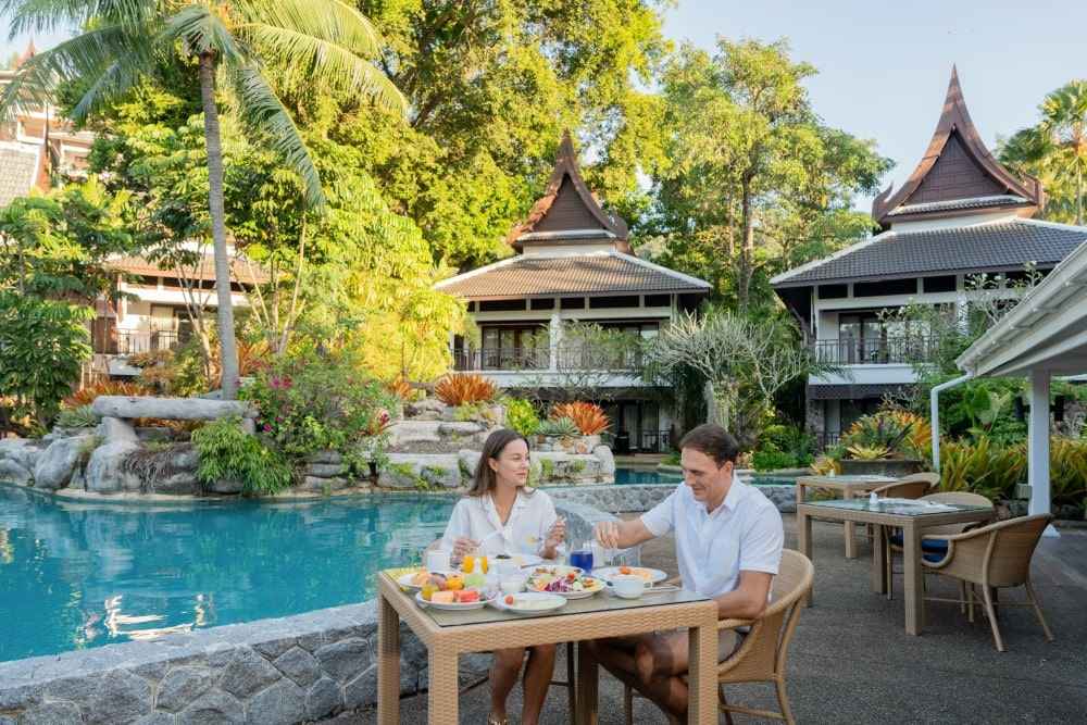 Thavorn Beach Village Resort & Spa offers various dining experiences with different settings and cuisines, from traditional Thai Royalty-inspired dishes to Western and international favorites.